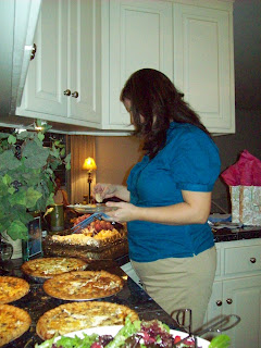 Prezzies! This is Kristina with my "classy" gift. Margarita set. I even threw in the tequila, mixer and salt. I was a little embarrased because everyone else got her something nice. But...who cares! My prezzie was fun. =)